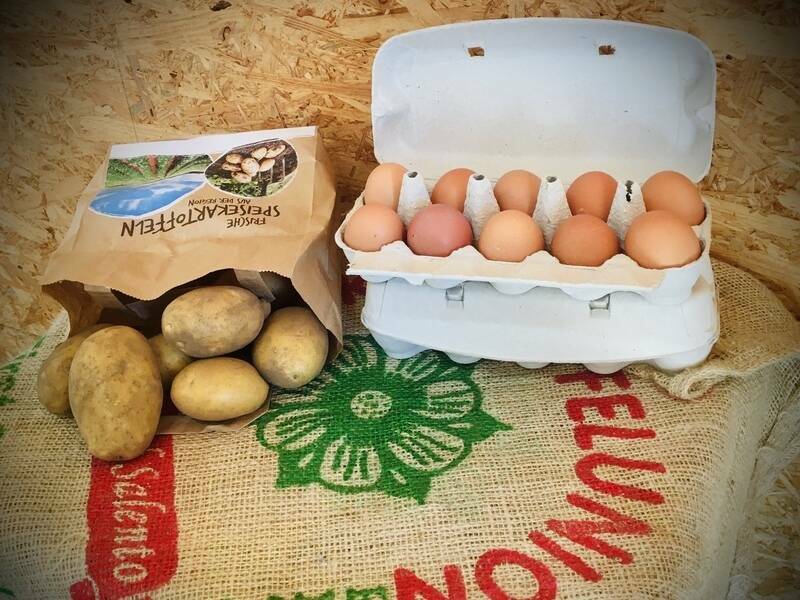 Eueren Einkaufskorb packen wir für euch zusammen. So könnt ihr diesen dann zu den Hofladen Öffnungszeiten abholen.